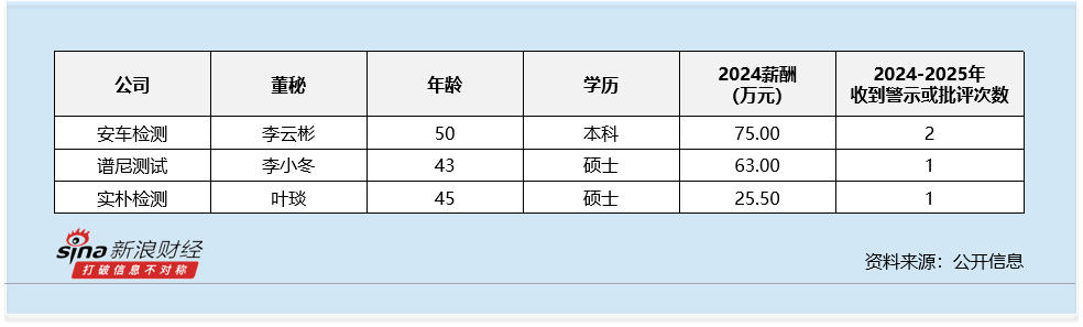 从违规情况来看,行业内共有3名董秘在2024-2025年收到过警示函、公开通报或内部通报的情况。