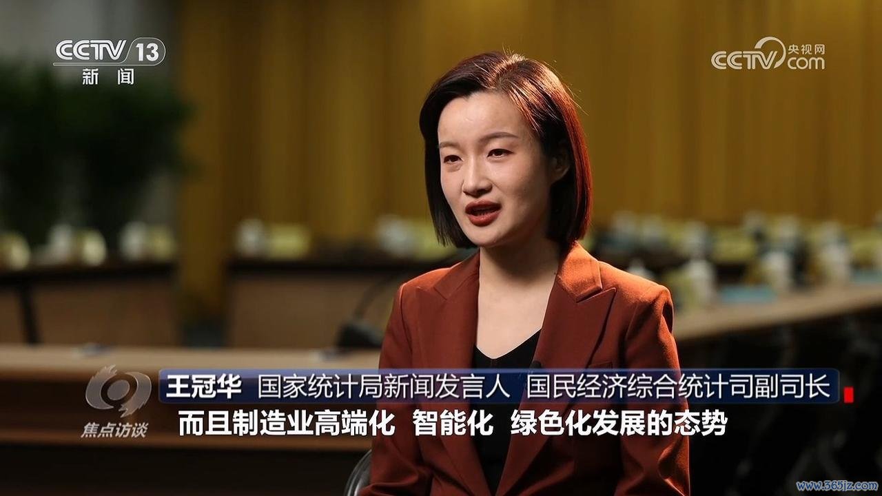 国家统计局新闻发言人、国民经济综合统计司副司长王冠华:“中国经济在过去一年顶压前行、向新向优,不仅表现在我们的增长速度可圈可点,更表现在中国经济发展的质量在稳步提升。去年,制造业增加值占国民经济的比重是稳定在25%左右,而且制造业高端化、智能化、绿色化发展的态势非常明显。”