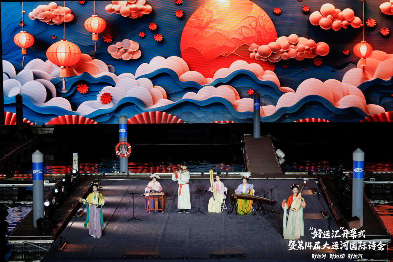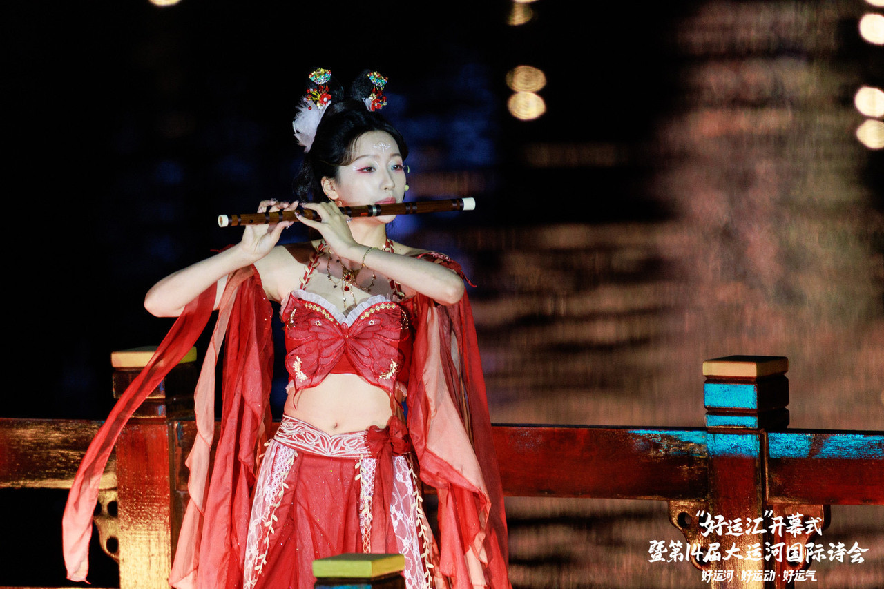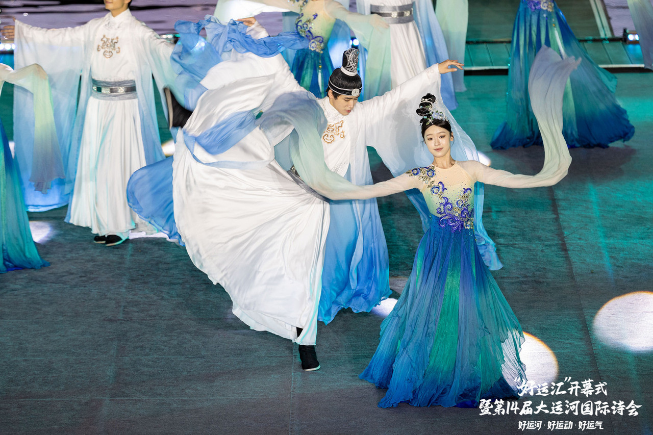 当晚,半塘欢喜国风乐团以新国乐串烧《运河诗乐图》,勾勒出运河流动的文化长卷;诗人舒羽联袂舞团与模特队,一场诗歌服装秀《舟行运河》,让诗词华彩跃然于霓裳之上;国家一级演员郑培钦、严圣民跨界献声,原创朗诵《运河,流淌千年的诗行》利创智投,雕琢出千年运河的诗意画卷;跨国情景朗诵《翠鸟日记》,细数枕水人家的烟火温情;评弹、越剧与英文跨界演绎《声声慢》,让世界运河明珠闪耀非遗魅力。