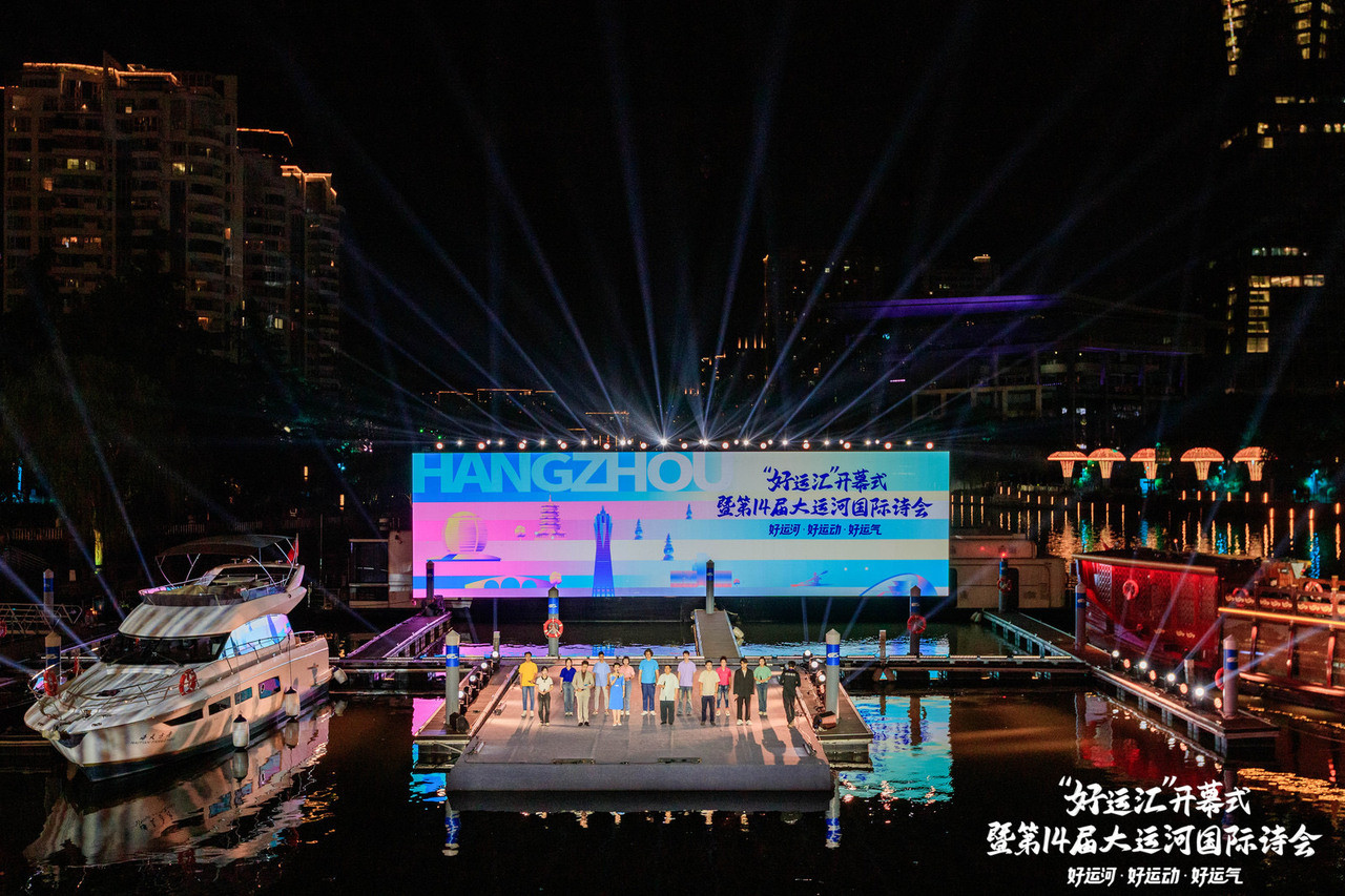 6月27日晚,杭州大厦好运湾,“好运汇”开幕式暨第14届大运河国际诗会在此拉开帷幕。这是一场以水为媒,以诗为韵,融合文化、体育、科技、时尚的文商旅体展跨界联动。串联“好运河”“好运动”“好运气”,大运河国际诗会、水上赛事、水上走秀、水上集市等丰富活动为市民游客奉上了沉浸式的运河盛宴。